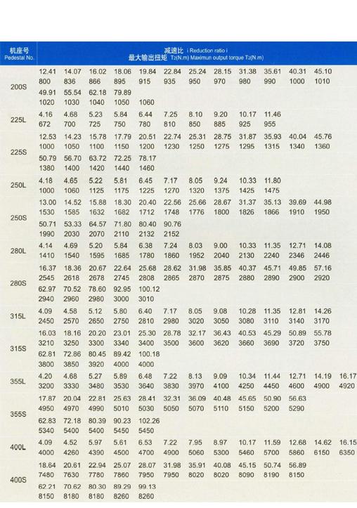 此系列包括:CJS100,CJS112,CJS132,CJS160,CJS180,CJS200,CJS225,CJS250,CJS280,CJS315,CJS355,CJS400 一、概述 CJS系列減速器是為塑料螺桿擠出機配套設計的高精度硬齒面帶推力座傳動部件。產品設計采用了ZBJ19009-88所規定的各項技術規范,其特點是齒輪和軸類零件采用了高強度合金鋼材質。齒輪經滲碳、淬水、磨齒工藝加工。齒輪精度為GB10095-88,6級。齒面硬度HRC54-62,在空心輸出軸前端配置有超規格的推力軸承,承受螺桿的工作后座力。軸承和油封等主要標準件皆采用國內優質產品,也可按用戶需要配置進口產品。整機具有體積小,承載能力高,傳動平穩,噪聲低,效率高等特點。產品性能已達到國際先進水平,可替代同類進口產品使用。 二、適用條件 1、減速器高速軸轉速不大于1500r/min. 2、工作環境溫度為0-35C.當溫度范圍超出本規定時,可按用戶要求另行配制加熱或冷卻裝置. 三、 減速機代號和標志