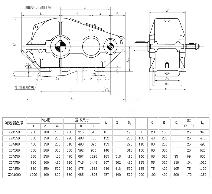 ZQA型減速器是在ZQ型減速器的基礎(chǔ)上改型設(shè)計(jì)的。為了提高齒輪的承載能力,又便于替代ZQ型,即安裝尺寸和外形尺寸、輸入和輸出軸伸不變的情況下,只改變齒輪的材質(zhì)和熱處理方式采用中硬齒面。并將ZQ型減速器的一級(jí)速比23.34改成25.02。