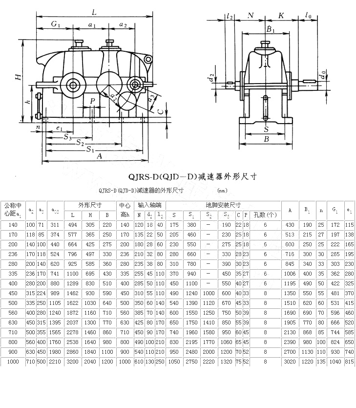 QJRS-D中硬齒面減速機(jī)圖紙尺寸