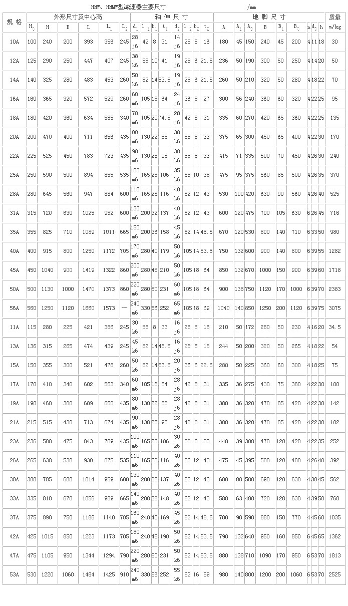 H型星輪減速器(JB/T 8712—1998)代替原混合少齒差星輪減速器(ZBJ 19006—1988)屬少齒差漸開(kāi)線行星齒輪傳動(dòng),具有體積小,承載能力高,傳動(dòng)比寬、密,效率高,壽命長(zhǎng),傳動(dòng)平穩(wěn),允許高速輸入等特點(diǎn)。采用單元化結(jié)構(gòu),以行星齒輪、內(nèi)齒輪、滾動(dòng)星輪、偏心套和行星架組合的主要單元,代號(hào)H;用擴(kuò)大傳動(dòng)比的附加單元代號(hào)N;用來(lái)改變輸入方向的附加單元代號(hào)Z。同一種機(jī)座號(hào)可采用4種承載能力單元結(jié)構(gòu),因而在產(chǎn)品型號(hào)后面附注A、B、C、D4個(gè)承載能力代號(hào),即輕型、中型、重型、超重型。適用于冶金、礦山、電力 、起重、運(yùn)輸、橡膠、水泥、造紙、制糖、鍋爐、建筑等領(lǐng)域,為通用型減速器。