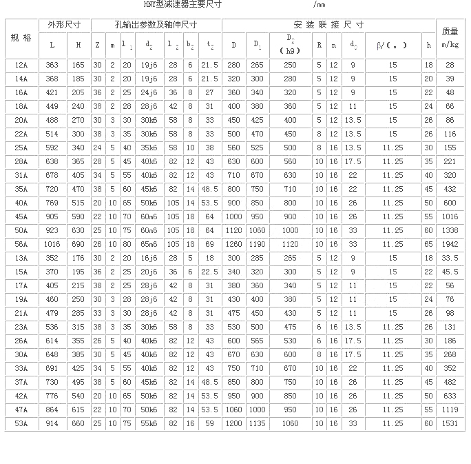 H型星輪減速器(JB/T 8712—1998)代替原混合少齒差星輪減速器(ZBJ 19006—1988)屬少齒差漸開線行星齒輪傳動,具有體積小,承載能力高,傳動比寬、密,效率高,壽命長,傳動平穩,允許高速輸入等特點。采用單元化結構,以行星齒輪、內齒輪、滾動星輪、偏心套和行星架組合的主要單元,代號H;用擴大傳動比的附加單元代號N;用來改變輸入方向的附加單元代號Z。同一種機座號可采用4種承載能力單元結構,因而在產品型號后面附注A、B、C、D4個承載能力代號,即輕型、中型、重型、超重型。適用于冶金、礦山、電力 、起重、運輸、橡膠、水泥、造紙、制糖、鍋爐、建筑等領域,為通用型減速器。