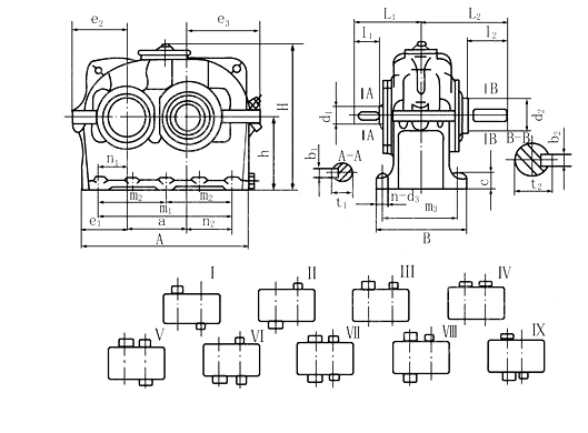 按國家標準JB/T8853-2001生產的外嚙合漸開線斜齒圓柱齒輪減速機。